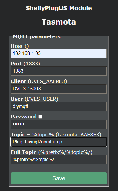 Enter in your MQTT IP, User and Password. Change the Topic to a unique name that resembles the device. Save it. Go to Configuration, Configuration Other and set the Device Name and Friendlyname to something user friendly such as "Living Room Lamp". Save it. Return to the Tasmota Console enter in the following command: