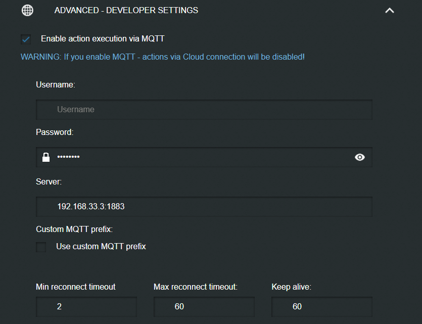 Go to Configuration, Configure MQTT.